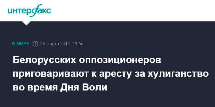 Белорусских оппозиционеров приговаривают к аресту за хулиганство во время Дня Воли