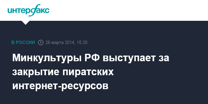 Минкультуры РФ выступает за закрытие пиратских интернет-ресурсов