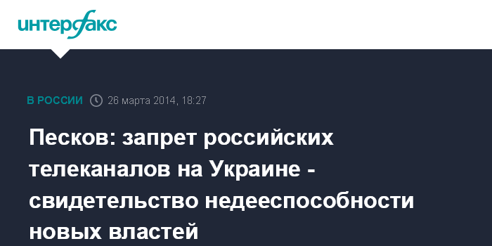 Песков: запрет российских телеканалов на Украине - свидетельство недееспособности новых властей