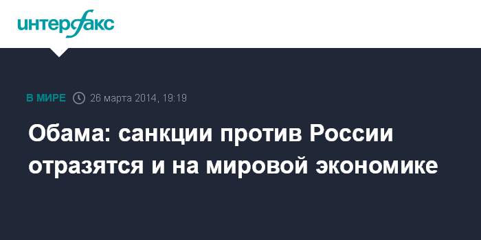 Москва. 26 марта. INTERFAX.RU - Брюссель. 26 марта. ИНТЕРФАКС - Санкции в отношении России отразятся и на мировой экономике, заявил, выступая во вторник на пресс-конференции в Брюсселе президент США Барак Обама.
