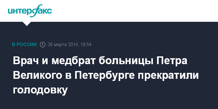 Врач и медбрат больницы Петра Великого в Петербурге прекратили голодовку