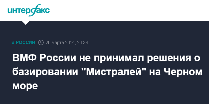ВМФ России не принимал решения о базировании "Мистралей" на Черном море