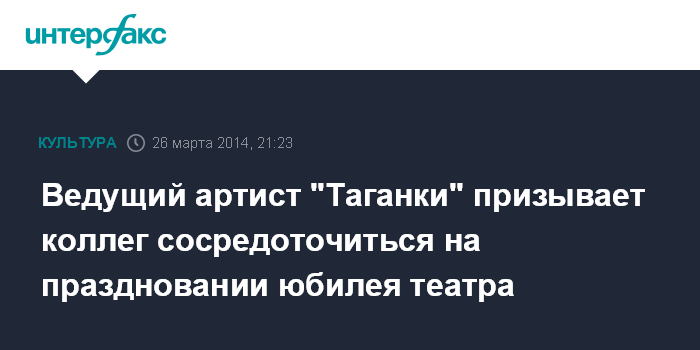 Ведущий артист "Таганки" призывает коллег сосредоточиться на праздновании юбилея театра