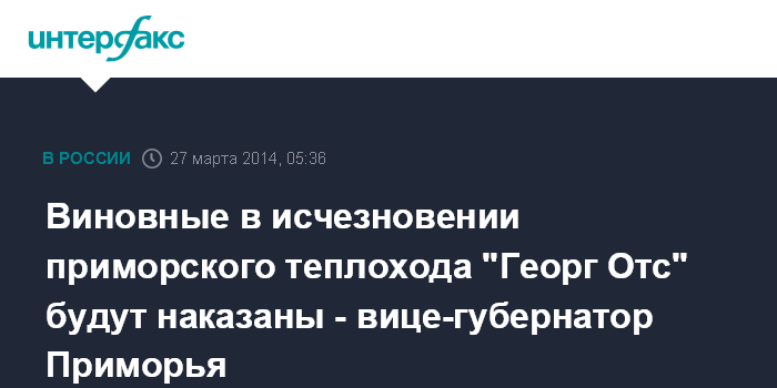 Виновные в исчезновении приморского теплохода "Георг Отс" будут наказаны - вице-губернатор Приморья