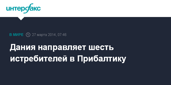Лондон. 27 марта. INTERFAX.RU - Датское руководство приняло решение о направлении шести военных самолетов для патрулирования воздушного пространства региона в связи с украинским кризисом, сообщила радиостанция DR.