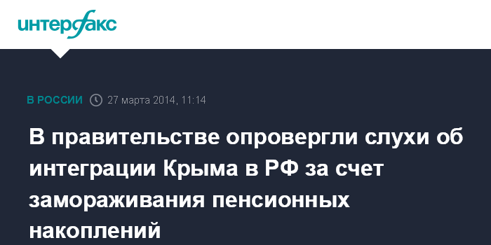 В правительстве опровергли слухи об интеграции Крыма в РФ за счет замораживания пенсионных накоплений