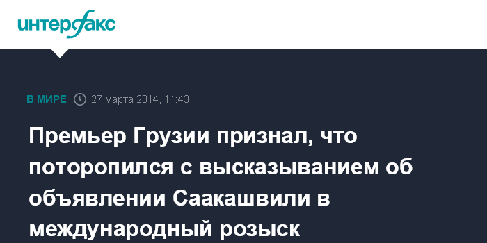 Москва. 27 марта. INTERFAX.RU - Премьер-министр Грузии Ираклий Гарибашвили заявил, что поспешил, предположив несколько дней назад, что в случае неявки на допрос 27 марта в прокуратуру экс-президент Михаил Саакашвили будет объявлен в международный розыск.