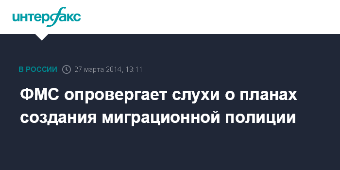 Москва. 27 марта. INTERFAX.RU - Создавать миграционную полицию в России не планируется, заявили "Интерфаксу" в четверг в пресс-службе Федеральной миграционной службы.