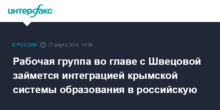 Москва. 27 марта. INTERFAX.RU - Председатель Госдумы Сергей Нарышкин поручил создать рабочую группу во главе с вице-спикером Людмилой Швецовой по вопросам интеграции системы образования Крыма в российскую систему.