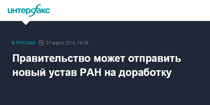Замглавы Минобрнауки РФ отметила, что в случае, если устав будет отклонен правительством, он будет направлен на доработку. Вместе с тем она не пояснила, будет ли в таком случае необходимость заново созывать общее собрание РАН для утверждения новой редакции устава.