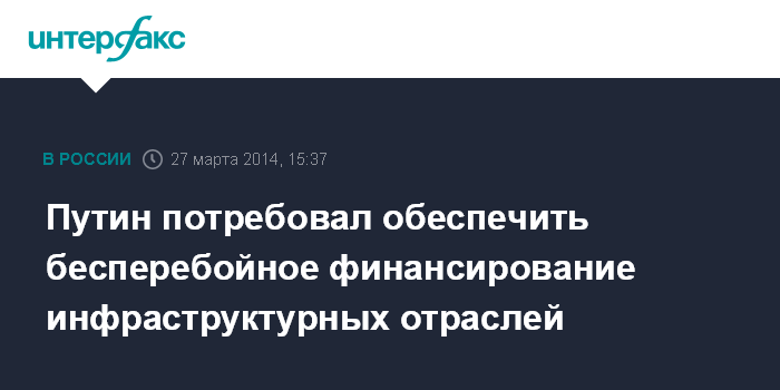 Ново-Огарево. 27 марта. - Президент РФ Владимир Путин потребовал не допускать сбоев в финансировании инфраструктурных отраслей России, в том числе связи и энергетики.