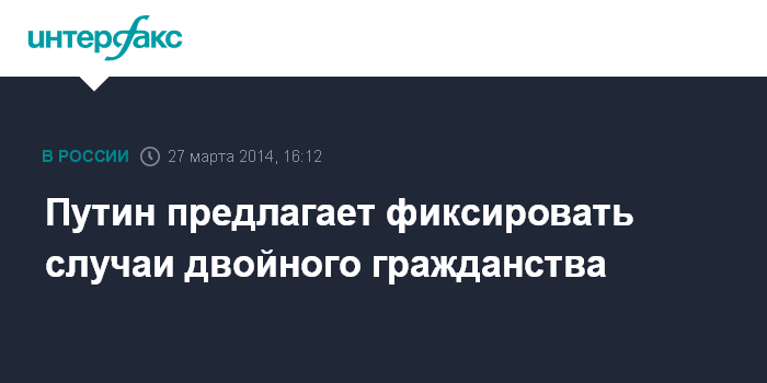 Ново-Огарево. 27 марта. INTERFAX.RU - Президент РФ Владимир Путин считает, что Россия должна фиксировать, кто из ее граждан имеет гражданство других государств.