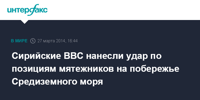 Дубай. 27 марта. INTERFAX.RU - Сирийская авиация ударила по позициям повстанцев в провинции Латакия на побережье Средиземного моря, сообщает в четверг агентство AP.