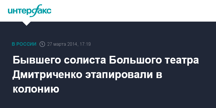 Москва. 27 марта. INTERFAX.RU - Бывший солист балета Большого театра Павел Дмитриченко, которого приговорили к пяти с половиной годам заключения за организацию нападения на худрука ГАБТа Сергея Филина, отправлен к месту отбывания наказания.