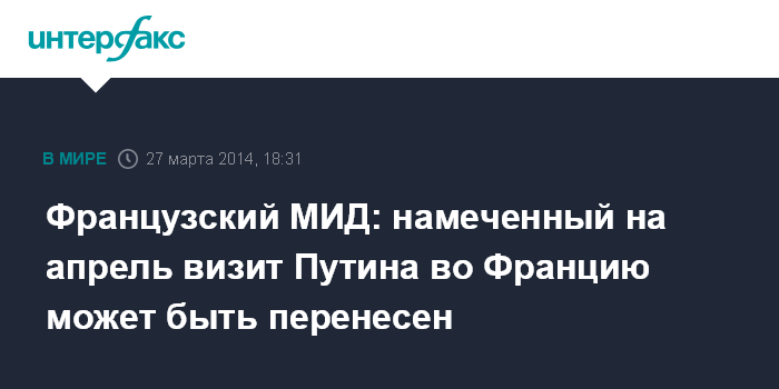 Москва. 27 марта. INTERFAX.RU - Париж и Москва обсудят уместность намеченного на конец апреля визита во Францию российского президента Владимира Путина, заявил в четверг глава МИД Франции Лоран Фабиус.