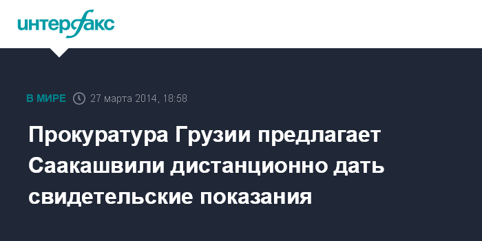 Москва. 27 марта. INTERFAX.RU - Главная прокуратура Грузии готова допросить экс-президента Михаила Саакашвили дистанционно, используя специальные технические средства.