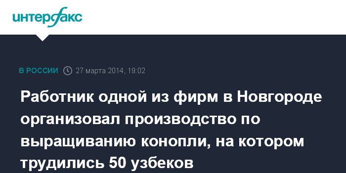 Работник одной из фирм в Новгороде организовал производство по выращиванию конопли, на котором трудились 50 узбеков