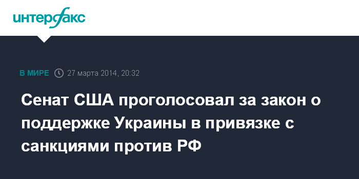 Москва. 27 марта. INTERFAX.RU - Сенаторы американского конгресса большинством голосов проголосовали за законопроект о поддержке Украины в привязке с санкциями в отношении России.