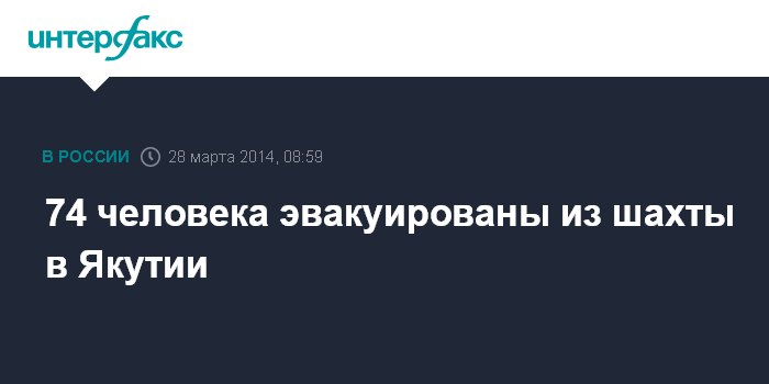 Москва. 28 марта. INTERFAX.RU - Рабочих шахты в Томпонском районе Якутии выведены на поверхность из-за задымления, говорится в сообщении на сайте МЧС РФ.
