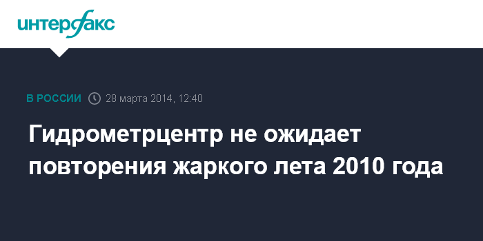 Гидрометрцентр не ожидает повторения жаркого лета 2010 года