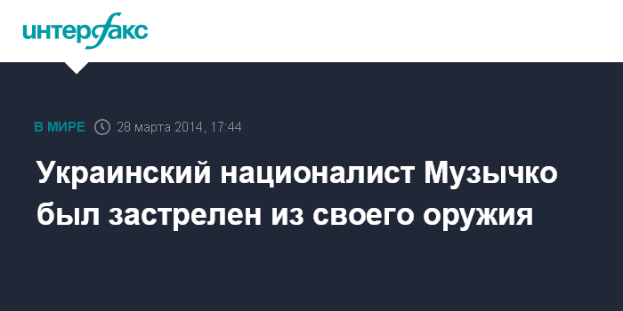 Москва. 28 марта. INTERFAX.RU - Пуля, изъятая из тела координатора "Правого сектора" Александра Музычко, известного как Сашко Билый, а также пуля, изъятая из руки раненого сотрудника "Сокола", выпущены из одного оружия, которое находилось у самого Музычко, заявляет первый замминистра внутренних дел Украины Владимир Евдокимов.