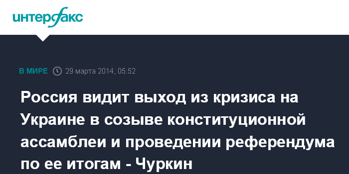 Россия видит выход из кризиса на Украине в созыве конституционной ассамблеи и проведении референдума по ее итогам - Чуркин