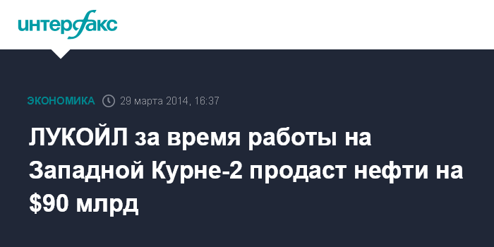 Москва. 29 марта. INTERFAX.RU - НК "ЛУКОЙЛ" за время работы на Западной Курне-2 в Ираке продаст нефти на $90 млрд, сообщил журналистам вице-президент компании, глава "ЛУКОЙЛ Оверсиза" (оператор международных upstream проектов НК) Андрей Кузяев.