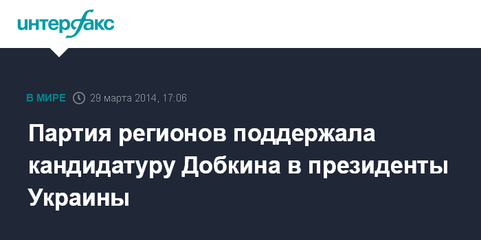 Москва. 29 марта. INTERFAX.RU - Партия регионов поддержала экс-губернатора Харьковской области Михаила Добкина на должность кандидата в президенты Украины. Как передает корреспондент агентства "Интерфакс-Украина", за его кандидатуру проголосовало абсолютное большинство делегатов съезда партии в субботу в Киеве.