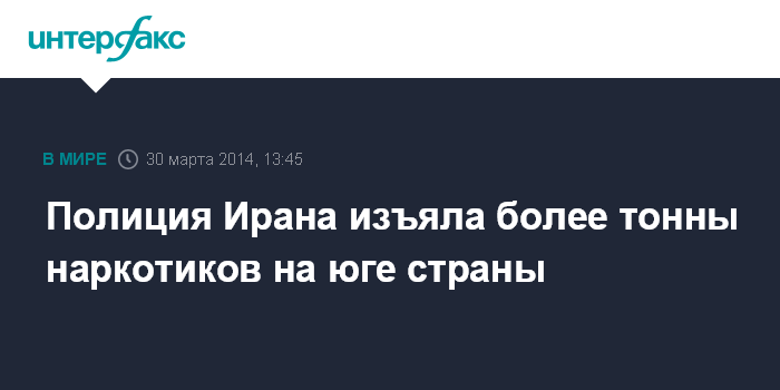 Москва. 30 марта. INTERFAX.RU - Сотрудники иранской полиции конфисковали более тонны наркотических средств в ходе спецоперации в южной провинции Керман, сообщает в воскресенье иранский телеканал "Пресс-ТВ".