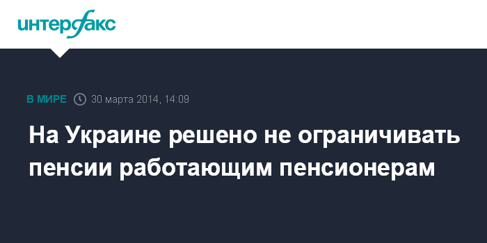 Москва. 30 марта. INTERFAX.RU - Правительство Украины приняло решение не осуществлять ограничение пенсии работающим пенсионерам, сообщает пресс-служба министерства финансов.