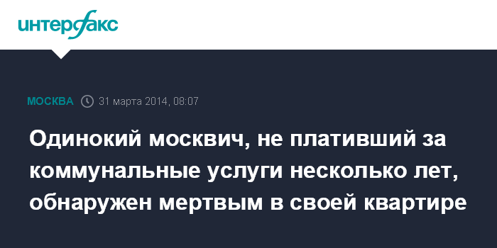 Одинокий москвич, не плативший за коммунальные услуги несколько лет, обнаружен мертвым в своей квартире
