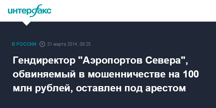 21 марта вышло постановление Якутского городского суда об избрании в отношении генерального директора ФКП "Аэропорты Севера" меры пресечения в виде ареста сроком на два месяца.