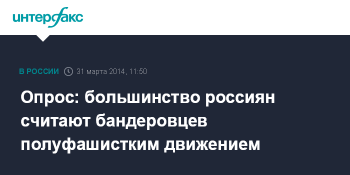 Москва. 31 марта. INTERFAX.RU - Большинство россиян (88%) слышали о бандеровцах, в том числе 40% из них хорошо себе представляют, кто они такие, свидетельствуют результаты опроса ВЦИОМ.