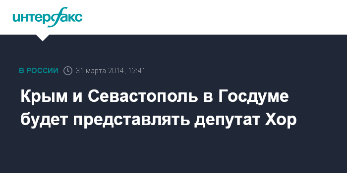 Крым и Севастополь в Госдуме будет представлять депутат Хор