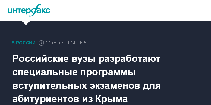 "Мы прекрасно понимаем, что, поскольку школьники учились не по российским программам, предъявлять к ним всем это требование (сдачи ЕГЭ) было бы неправильно, поэтому они будут сдавать выпускные экзамены в школах и будут поступать в российские вузы в соответствии с теми приемными экзаменами, которые наши вузы разработают специально для выпускников крымских школ", -сказал Ливанов.