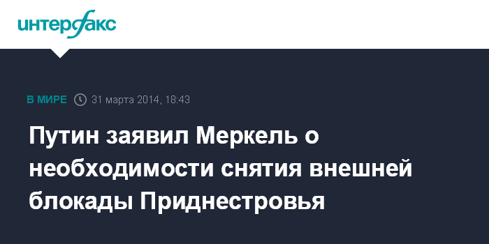 Путин заявил Меркель о необходимости снятия внешней блокады Приднестровья