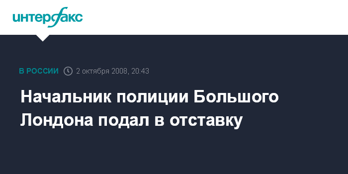 Москва. 2 октября. INTERFAX.RU - Начальник полиции Большого Лондона Иан Блэр в четверг подал в отставку, сообщают британские СМИ. Его пост на правах исполняющего обязанности занял бывший заместитель сэр Пол Стивенсон.