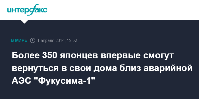 Москва. 1 апреля. INTERFAX.RU - Японские власти впервые разрешили 357 подданным вернуться в свои жилища в одном из районов города Тамура, сообщает во вторник агентство Associated Press.