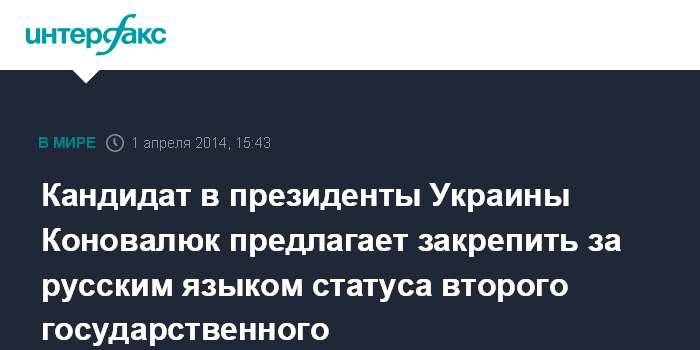 Кандидат в президенты Украины Коновалюк предлагает закрепить за русским языком статуса второго государственного