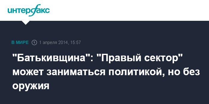 Москва. 1 апреля. INTERFAX.RU - "Правый сектор" может продолжить работу как политическая организация, не включающая вооруженные формирования, заявил лидер парламентской фракции "Батькивщина" Сергей Соболев.