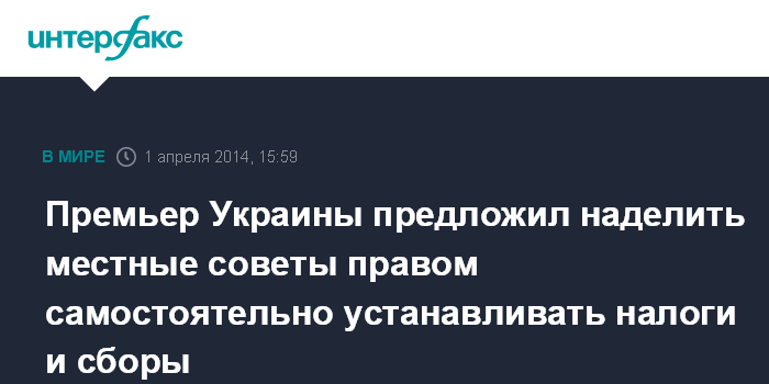 Премьер Украины предложил наделить местные советы правом самостоятельно устанавливать налоги и сборы