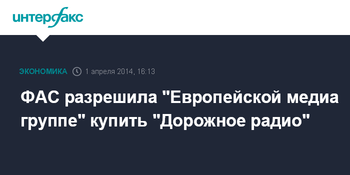 ФАС разрешила "Европейской медиа группе" купить "Дорожное радио"