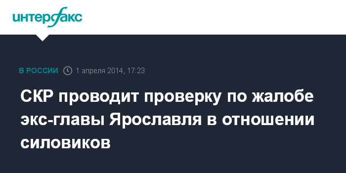 Москва. 1 апреля. INTERFAX.RU - Следственный комитет России начал проверку по фактам обращения к ним отстраненного от должности мэра Ярославля Евгения Урлашова и его просьбы о возбуждении уголовного дела против сотрудников силовых структур.