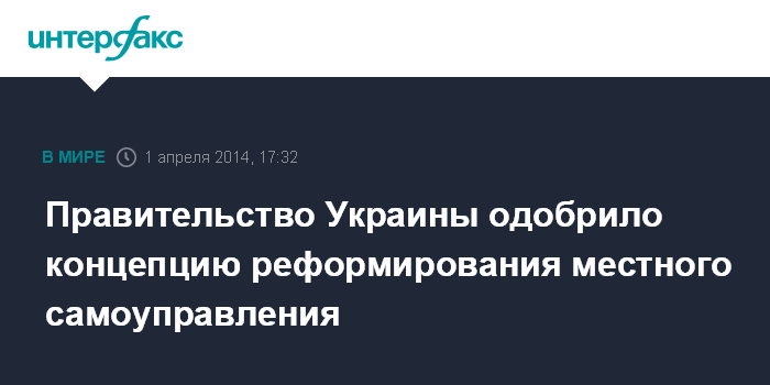 Москва. 1 апреля. INTERFAX.RU - Кабинет министров Украины утвердил концепцию реформирования местного самоуправления, сообщил вице-премьер, министр регионального развития Владимир Гройсман.