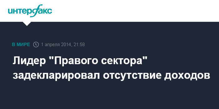 Москва. 1 апреля. INTERFAX.RU - Лидер радикальной партии "Правый сектор", кандидат в президенты Украины Дмитрий Ярош в 2013 году задекларировал отсутствие доходов.