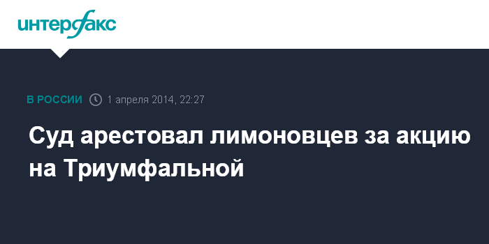 Москва. 1 апреля. INTERFAX.RU - Суд постановил отправить под арест группу активистов незарегистрированной партии "Другая Россия", которые были задержаны накануне полицией на несанкционированной акции на Триумфальной площади Москвы.
