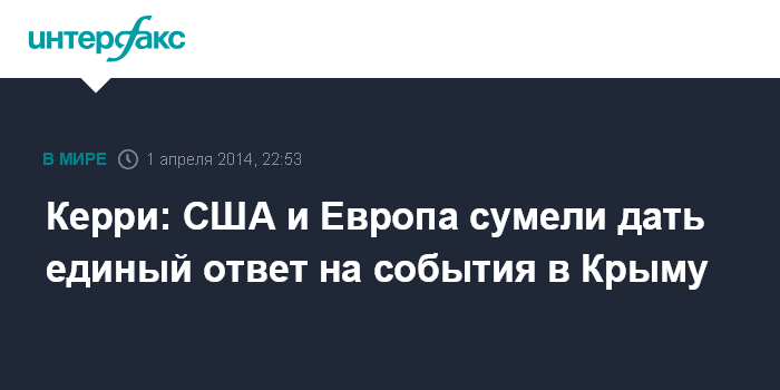 Москва. 1 апреля. INTERFAX.RU - Страны Европы и Северной Америки сумели дать единый ответ на события в Крыму, заявил во вторник госсекретарь США Джон Керри.