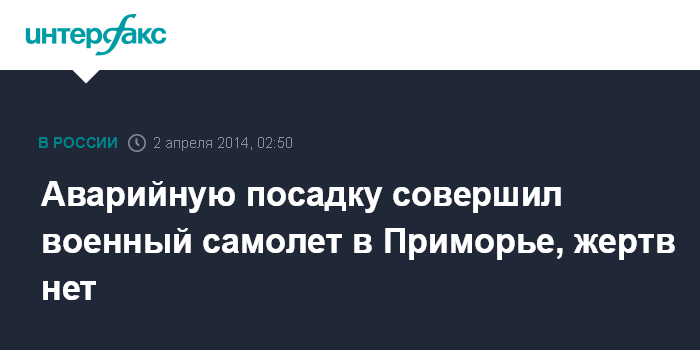 Владивосток. 2 апреля. INTERFAX.RU - В Приморском крае в ночь на среду произошла аварийная посадка истребителя Су-27, сообщил агентству "Интерфакс - Дальний Восток" источник в правоохранительных органах в среду.