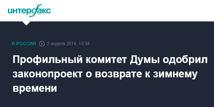 Москва. 2 апреля. INTERFAX.RU - Комитет Госдумы по охране здоровья в среду рекомендовал нижней палате принять в первом чтении законопроект о возврате к зимнему времени.