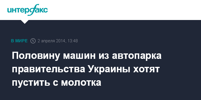 Москва. 2 апреля. INTERFAX.RU - Правительство Украины готовит к продаже на открытом аукционе 50% автопарка секретариата кабинета министров, планируется выставить 72 легковых автомобиля, сообщил журналистам министр кабинета министров Остап Семерак в среду в Киеве.